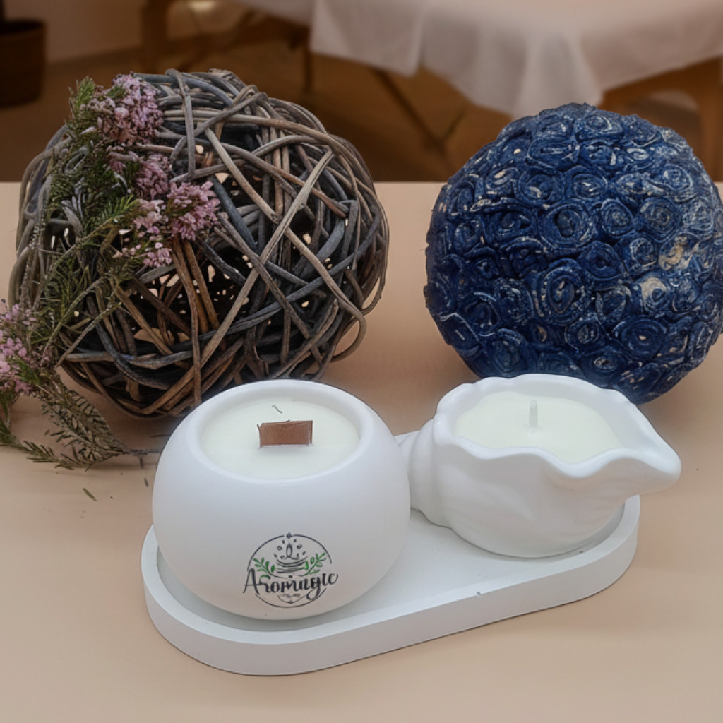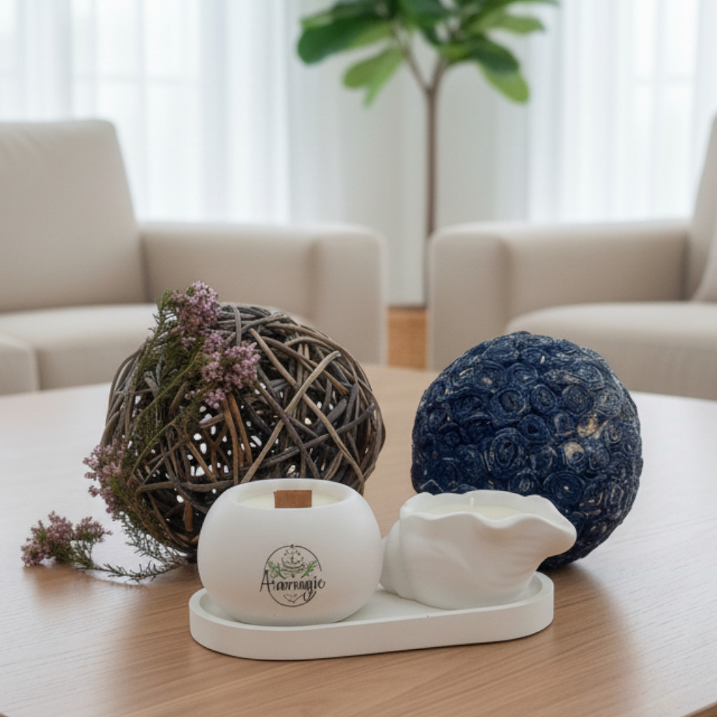 Pack dúo de experiencia sensorial: Incluye una vela aromática de Canela y Naranja para ambientar y una vela de masaje corporal con karité para hidratar la piel. El regalo perfecto de aromaterapia y bienestar natural. 100% cera de soja artesanal sin parafina.