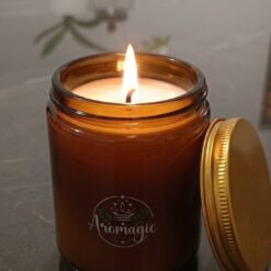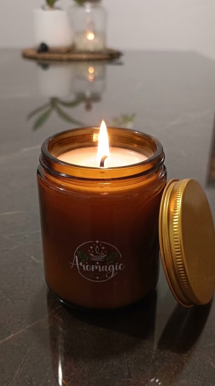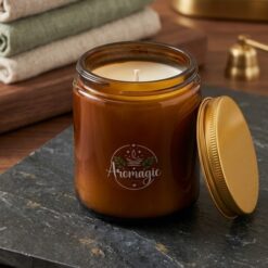 Vela Aromática Artesanal (200g): Elaborada con ceras vegetales premium y mechas de algodón. Su luz cálida establece la intención de relax y libera el aroma de forma gradual y envolvente.