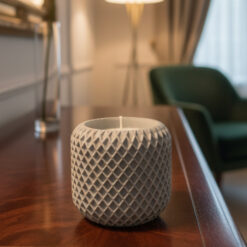 La vela Harmony demuestra que no hace falta gastar mucho para tener una pieza de decoración exclusiva. Su vaso de cristal tallado con relieve crea un juego de luces precioso cuando la llama está encendida, proyectando sombras geométricas que relajan la vista.